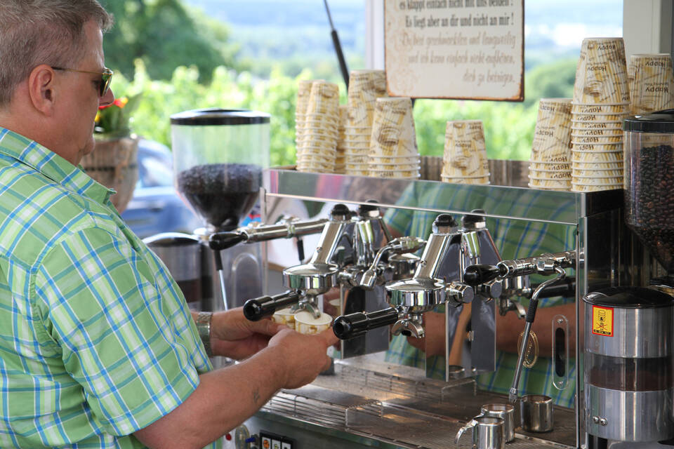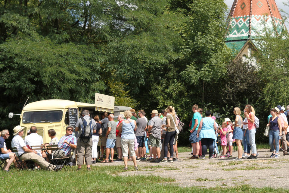 "Will jemand einen Harry?" Bei Lara’s Kantinchen aus Ludwigshafen hat jedes Sandwich einen Namen. Der kleine urige Truck hat neben der Wallfahrtskapelle am Gipfel des Letzenbergs Stellung bezogen. Die Sandwiches gibt es mit Pastrami, dünnen Scheiben geräucherten und gewürzten Fleischs, oder auch mit gratiniertem Camembert. Ein Stück weiter bietet ein Café Mobil Kaffeespezialitäten an.