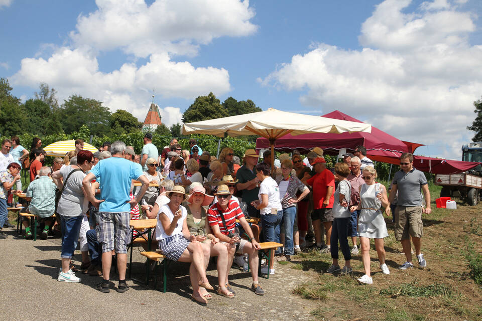 Das Wetter am Sonntag war ideal: sonnig, aber nicht zu heiß. Kein Wunder, dass die Weinwanderung am Letzenberg eine glänzende Resonanz fand. Zu Hunderten pilgerten die Weinfreunde den Letzenberg hinauf und genossen die herrliche Aussicht und die Gastfreundschaft der Malscher Winzer. Fotos: Sabine Hebbelmann