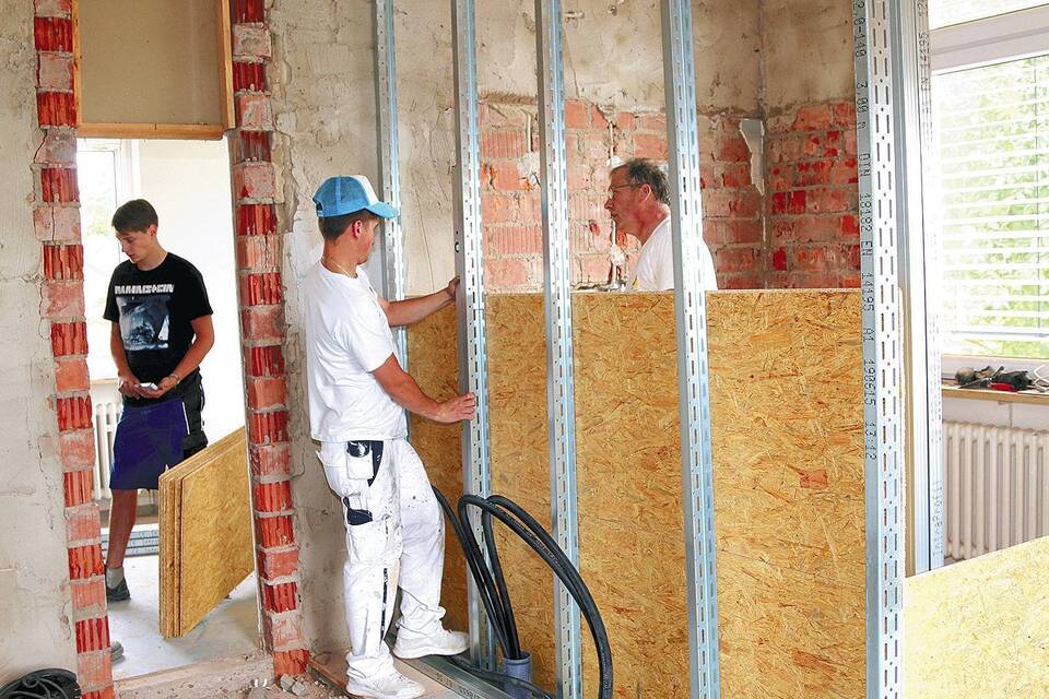 Gestern war die Herbst GmbH (Hardheim) dann mit Trockenbauarbeiten im zweiten Obergeschoss beschäftigt. Ebenfalls vergeben wurden die Fliesenarbeiten (Firma Stang, Külsheim), die Bodenbelagsarbeiten (Firma Beuchert, Hardheim) sowie die Schreinerarbeiten und der Einbau der Türen und Schränke (Firma Weidinger, Schweinberg). Die Ausführung der übrigen Gewerke wie Sanitär, Heizung oder Elektro soll in Eigenleistung erfolgen.