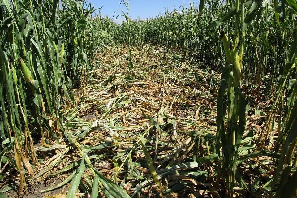 Diese Schneise haben Wildschweine in Andreas Knopfs Maisfelder geschlagen. Damit sind die Tiere für größere Ernteausfälle verantwortlich als die Trockenheit. Foto: privat