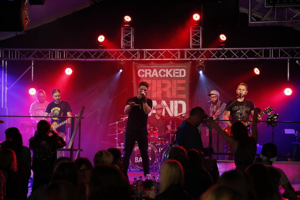 Nach dem Auftritt der Stadtkapelle enterte die "Ortsteilcombo" die Bühne, um die Besucher mit fetzigen Rhythmen in Stimmung zu bringen. Mit Erfolg.