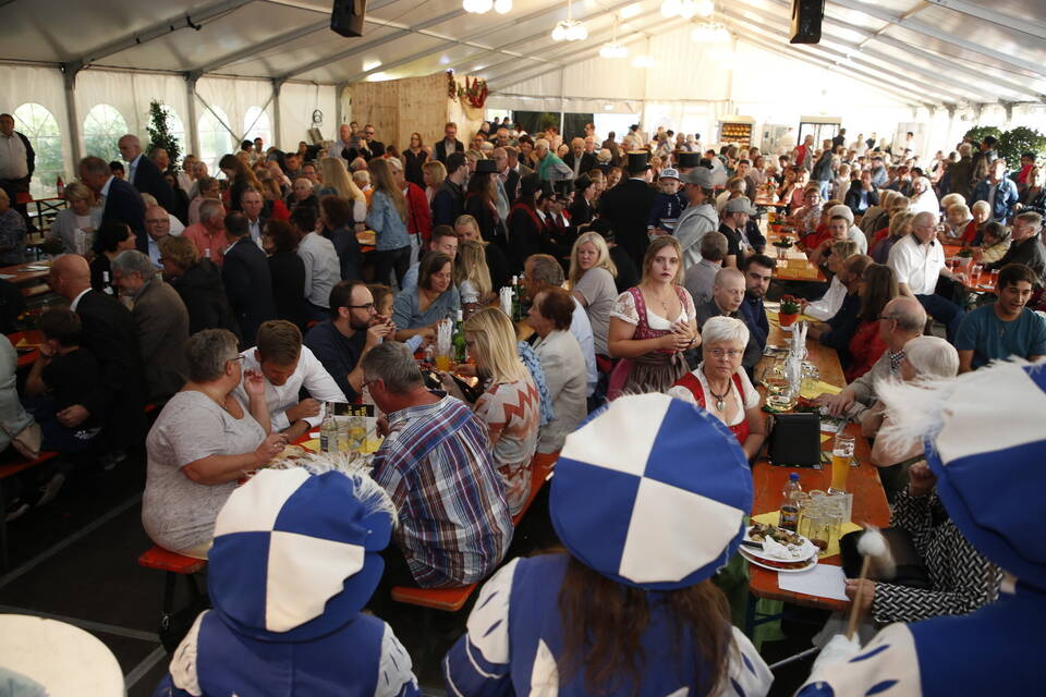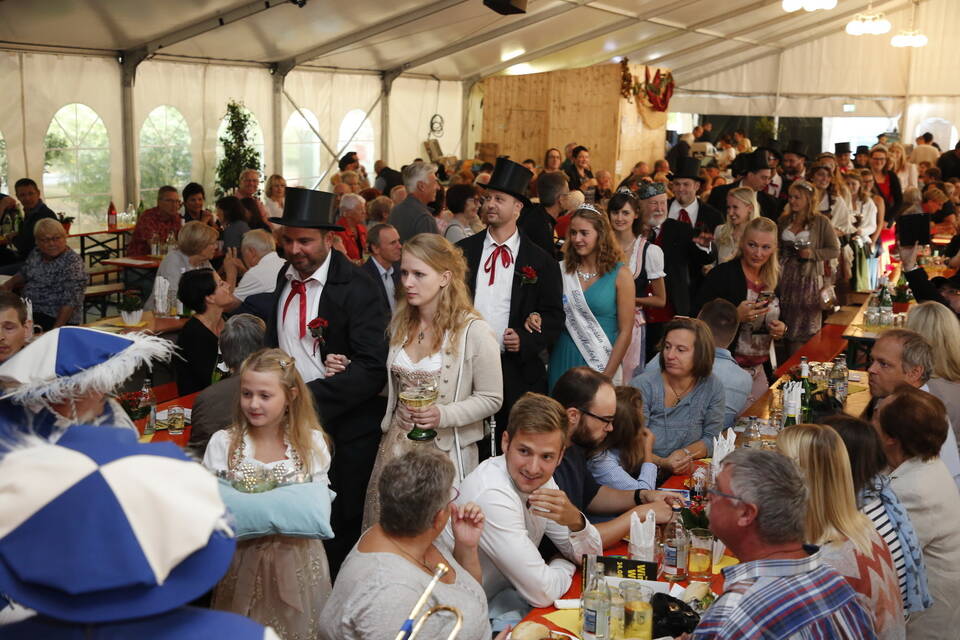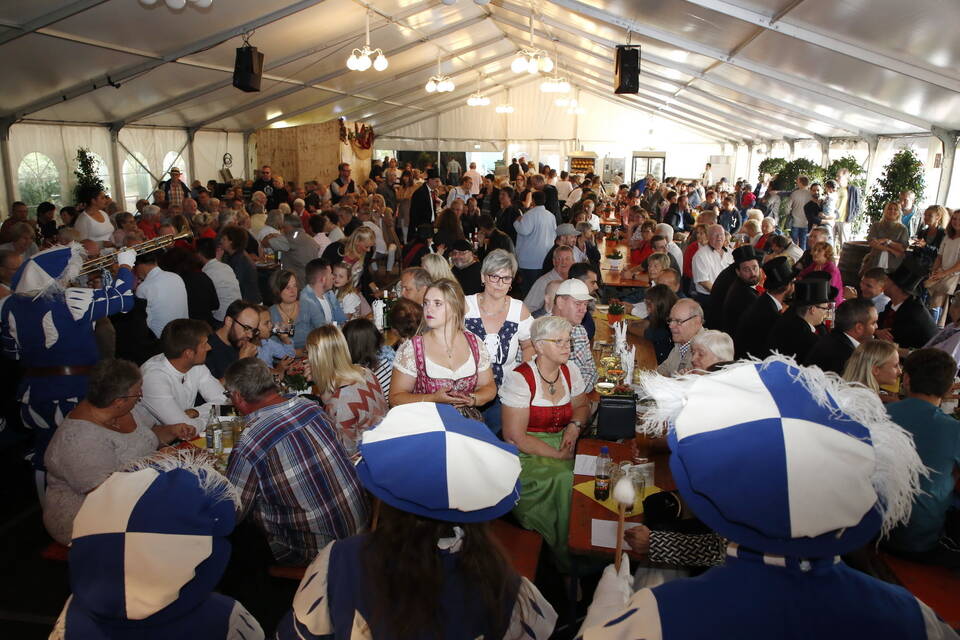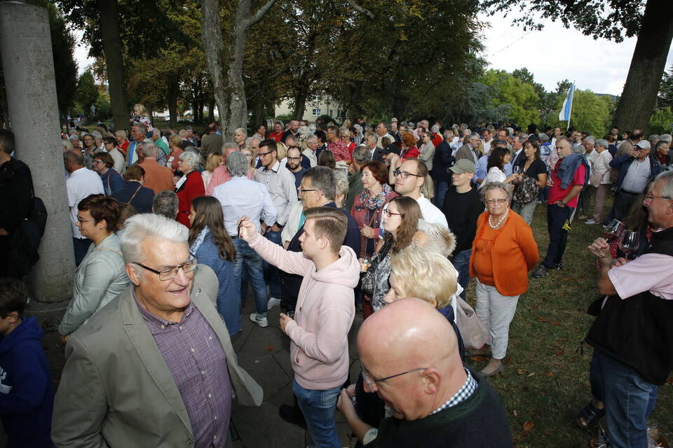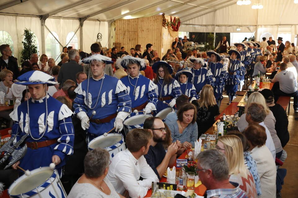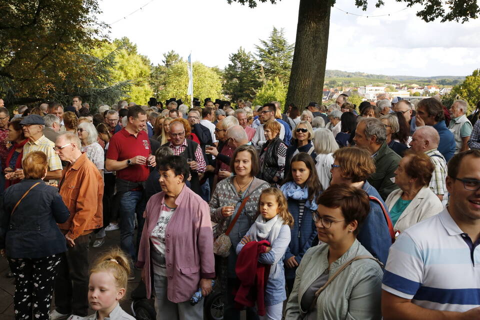 Zuerst war es der Kurpfälzische Fanfarenzug Wiesloch, der für stimmungsvolle musikalische Begleitung sorgte, später übernahm die Stadtkapelle Wiesloch unter Leitung von Harald Weber im Zelt, um mit schwungvollen Weisen die Gäste zu unterhalten. Nicht fehlen durfte im Repertoire natürlich das Badener Lied. Auf dem Festplatz herrschte dichtes Gedränge und auch im Weindorf, das noch bis Montag (17 bis 23 Uhr) geöffnet hat, war kaum noch ein Plätzchen zu ergattern.