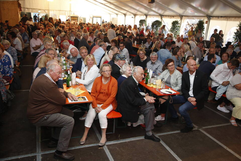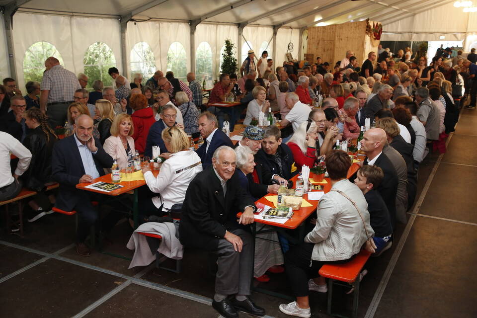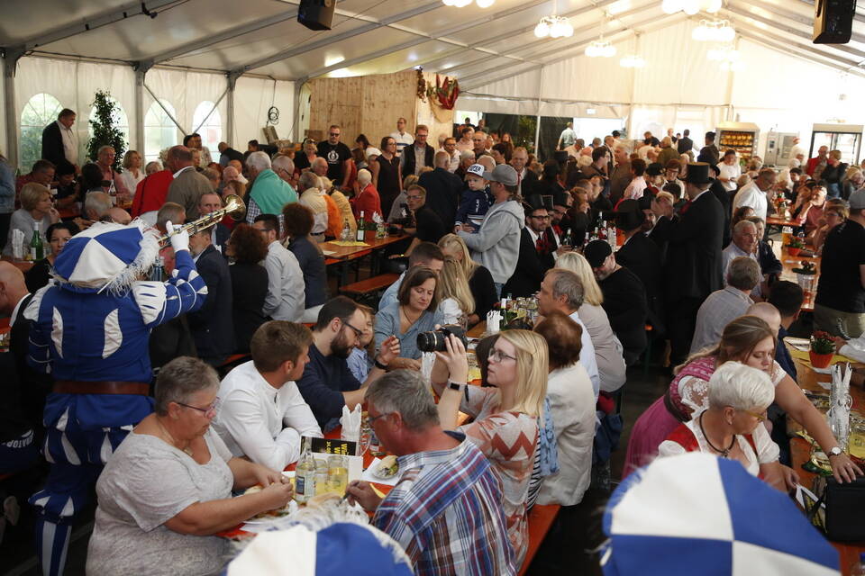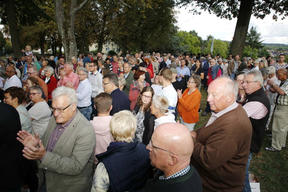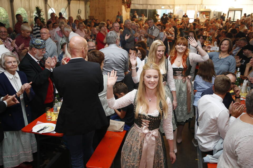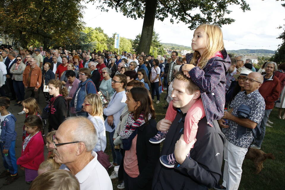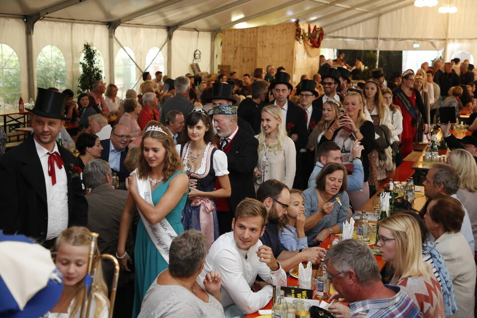 Zuerst war es der Kurpfälzische Fanfarenzug Wiesloch, der für stimmungsvolle musikalische Begleitung sorgte, später übernahm die Stadtkapelle Wiesloch unter Leitung von Harald Weber im Zelt, um mit schwungvollen Weisen die Gäste zu unterhalten. Nicht fehlen durfte im Repertoire natürlich das Badener Lied. Auf dem Festplatz herrschte dichtes Gedränge und auch im Weindorf, das noch bis Montag (17 bis 23 Uhr) geöffnet hat, war kaum noch ein Plätzchen zu ergattern.