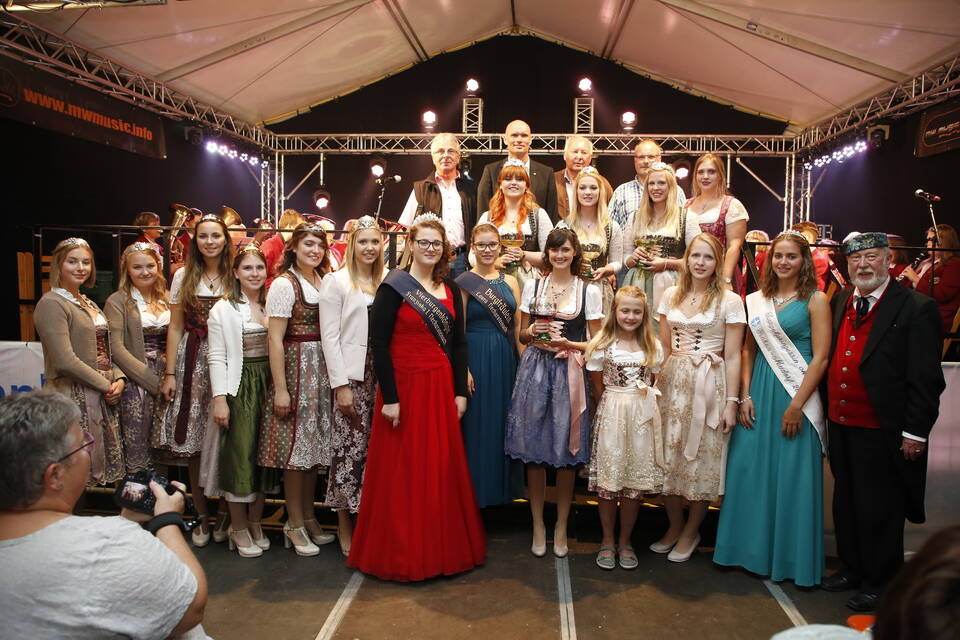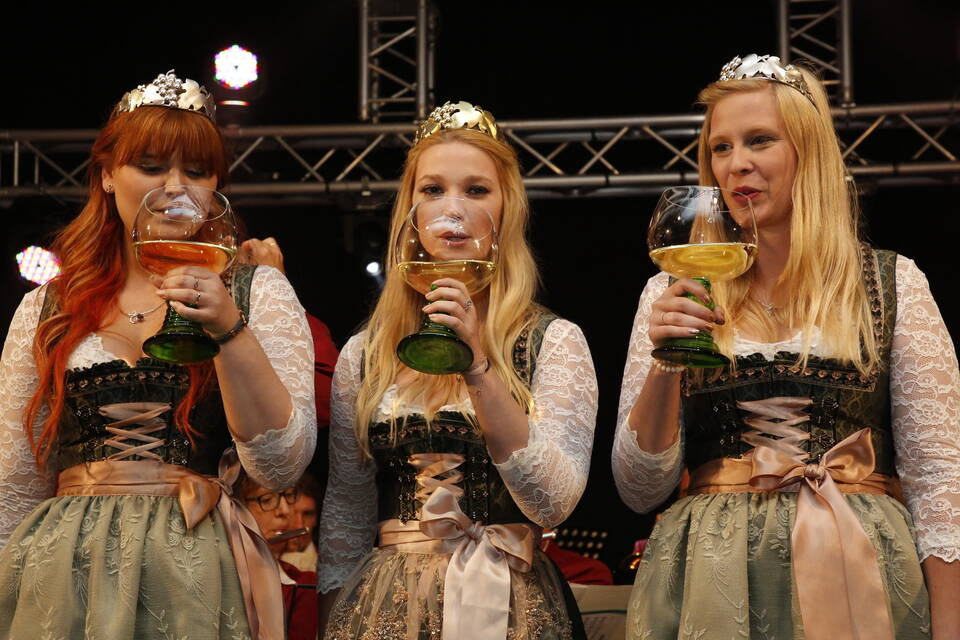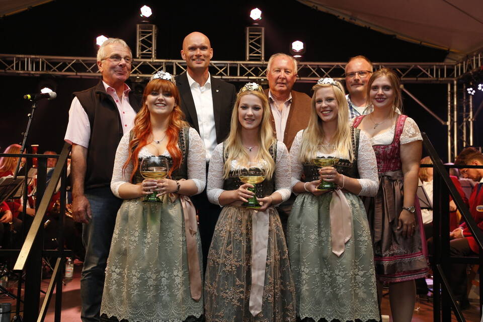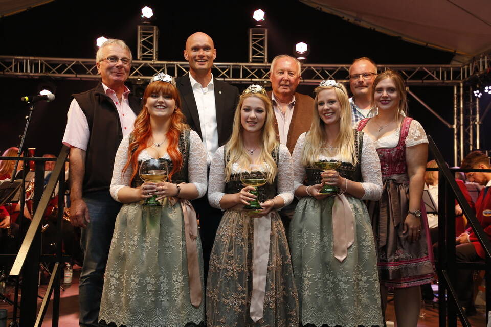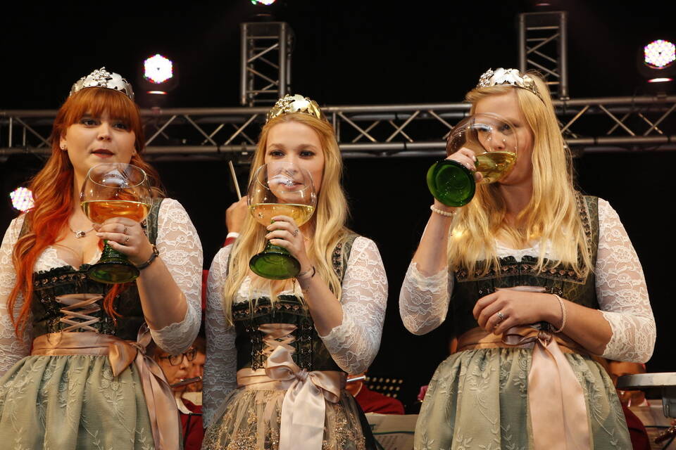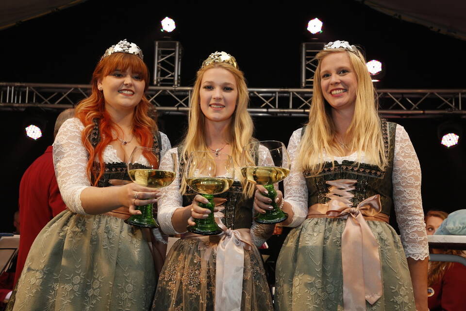 Mit dabei waren Weinhoheiten und Prinzessinnen aus der Umgebung, so beispielsweise aus Neckarsteinach, Lützelsachsen und Hemsbach und Anika I. aus Malschenberg blieb es vorbehalten, den Akt der Entkrönung zu vollziehen. Willi Lowinger, der Chef des Vergnügungsparks, Festzeltwirt Tilmann Werner und der Vertreter der "Winzer von Baden", der Aufsichtsratsvorsitzende Rudolf Meel, ließen es sich nicht nehmen, als motiviertes Trio auf die kommenden neun Tage anzustoßen.