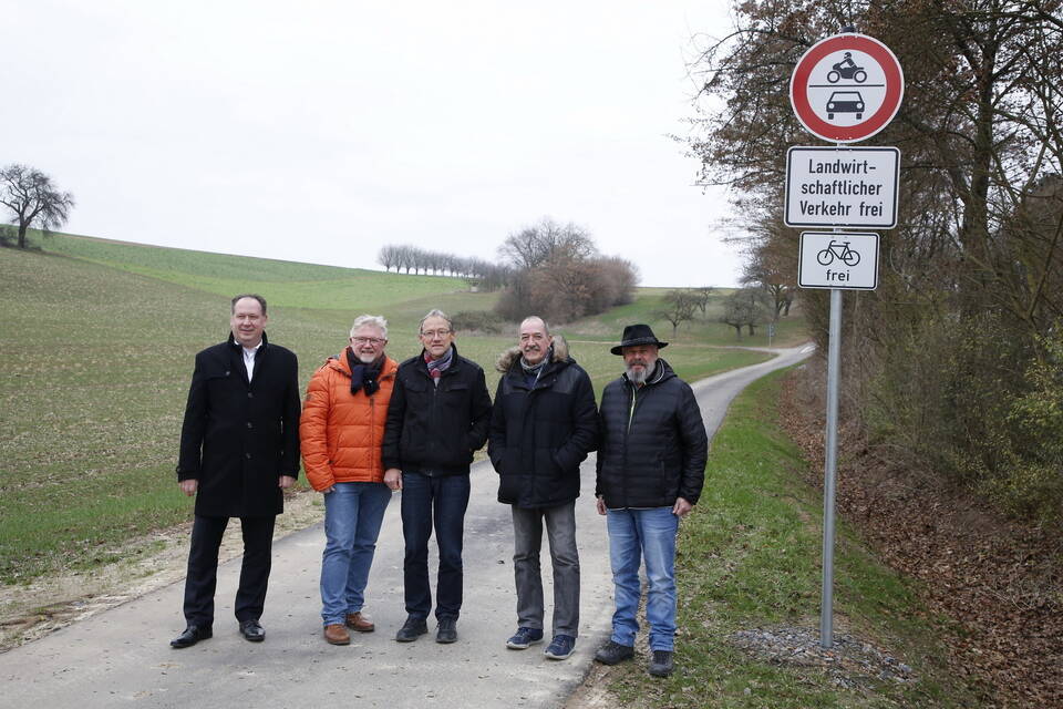 Über den neuen Radweg freuten sich: (v.li.) Thomas Glasbrenner, Peter Hesch, Harald Seib, Karlheinz Hess und Michael Westram. Foto: Pfeifer