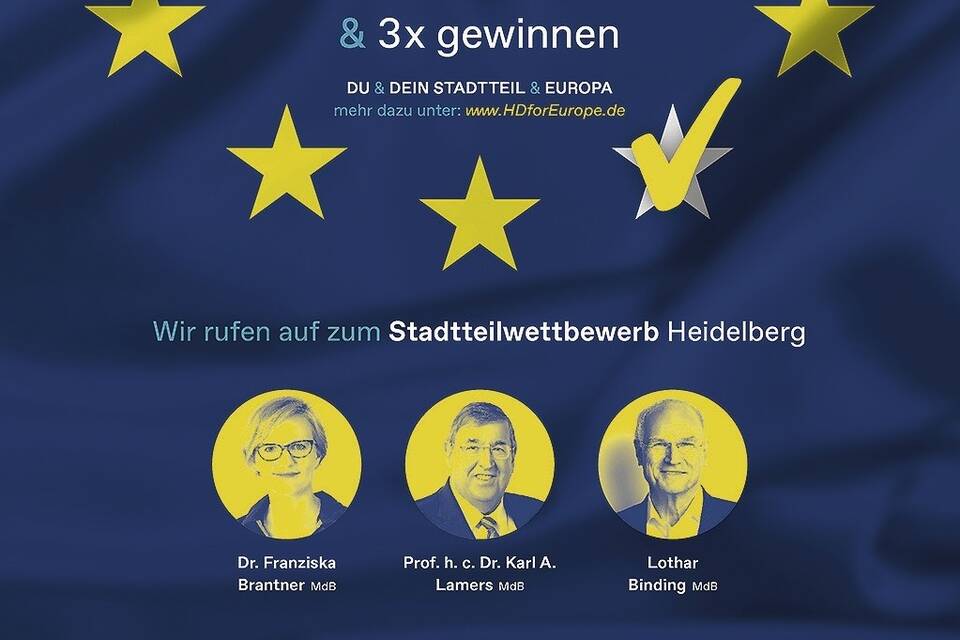 Heidelberg. Erstmals tun sich die drei Heidelberger Bundestagsabgeordneten zusammen, um die Werbetrommel für die Europawahl zu rühren: "Uns allen liegt Europa am Herzen". Und zwar unabhängig von den Parteien - was wiederum den berühmten Ausspruch Kaiser Wilhelms beim Ausbruch des Ersten Weltkriegs nahelegt ("Ich kenne keine Parteien mehr, ich kenne nur noch Deutsche") - wenn auch auf Europa gemünzt. Aber Franziska Brantner (Grüne). Karl A. Lamers (CDU) und Lothar Binding (SPD) wollen es nicht bei wohlfeilen Worten belassen, sie rufen einen Wettbewerb aus, mit dem die Heidelberger an die Urnen gelockt werden sollen.