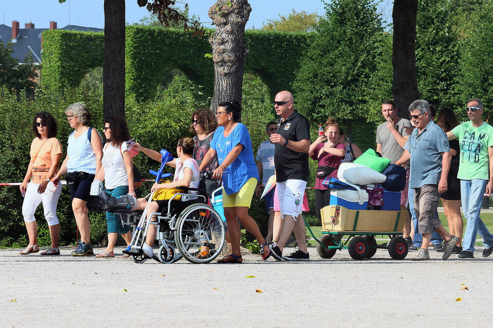 Betrieb war bei der Kinderbühne an der Orangerie mit Hüpfburg und Clowns, wo sich Familien niedergelassen hatten. Zu ihnen zählte der gebürtige Ungar Oszkar, der mit Familie und Freunden aus Karlsbad das erste Mal zum Fest gekommen war: "Die Kinder können spielen, wir Erwachsenen haben Ruhe." Eine Freundin lächelte: "Wir haben nur die Picknick-Decke vergessen, aber das macht nichts."