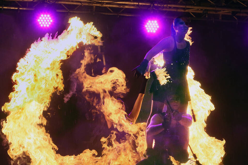 Zu den Höhepunkten des Fests zählte der Auftritt der Firedancer: Mit brennenden Stäben und Kesseln zeichneten sie Feuer-Bilder in die Nacht. Eine Akrobatin tanzte mit einem brennenden Reif Hula-Hoop. Der Reif kreiste sogar um ihren Hals. Während der Show begann der Regen. Dann stieg das große Feuerwerk in den Regenhimmel, das Lichterfest war zu Ende.