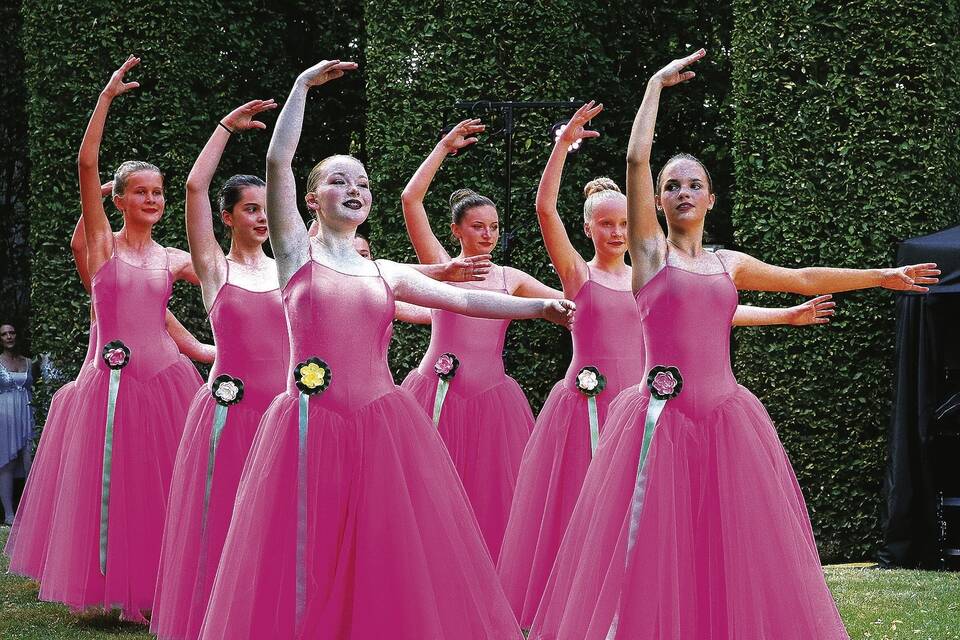 Auf der Bühne am Apollo-Tempel verzauberte Geigerin Katharina Garrard die Gäste: Im roten Gala-Kleid spielte sie Stücke von Camille Saint-Saëns oder Beethoven. Der zwölfjährige Philip aus Heidelberg wagte sich auf die Bühne und tanzte zum irischen Song der Geigerin. Seine Mutter: "Das war mutig." Es folgte die Classical-Dance-Show der Ballett-Schule von Barbara Benkeser-Hammerto. Anmutig schwebten die Tänzerinnen über den Rasen. Zu sehen war unter anderem ein "Traum der Eleganz" zu einer Nocturne von Chopin, gefolgt von dem berühmten Copellia Walzer von Léo Delibes.