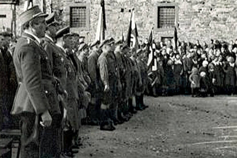 Der Volkssturm versammelte sich mit Rucksack und Wasserflasche auf dem Schlossplatz. Von dort aus marschierten die Männer im Tal Richtung Schweinberg, wo sich der Volkssturm auflöste. Über den Wald kehrten die einzelnen Männer zurück nach Hardheim.