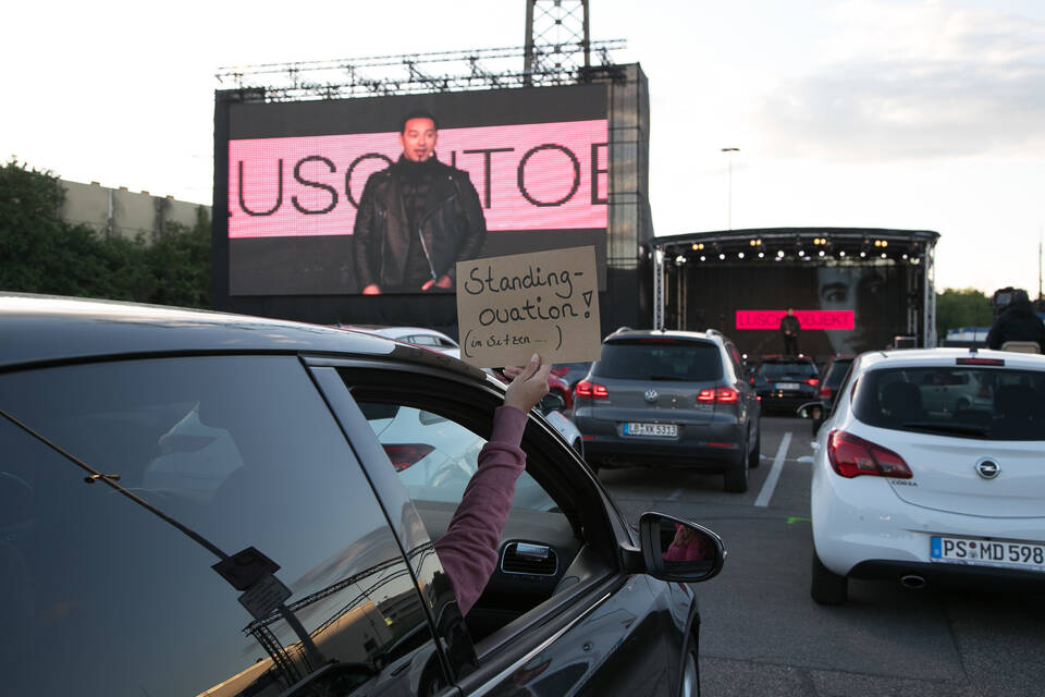 Ein wenig wie Beethoven in seinen letzten Jahren fühle er sich angesichts der Autos, die jetzt vor ihm stehen. "Da war er taub und hat trotzdem Musik gemacht", vergleicht der musikalische Comedian, der vor ungewohnter Kulisse kaum Gelächter und Beifall zu hören vermag, weil ihm das Publikum hinter den Windschutzscheiben verborgen bleibt. Doch Ceylan kann sich auf seine mittlerweile 22-jährige Bühnenerfahrung verlassen, weiß genau, an welchen Stellen normalerweise gelacht wird, und bekommt zudem Rückmeldung in Form regelrechter Hupkonzerte, die für den gewohnten Applaus stehen. Immer wieder werden von den Zuschauern die akustischen Signale, dazu Lichthupen und Warnblinker eingesetzt, um zu demonstrieren, dass die Show gefällt. Geradezu surreal wirkt diese Szenerie, beinahe wie in den "Cars"-Kino-Animationsfilmen, in denen Autos das Sagen haben, während die Menschen keine Rolle spielen.