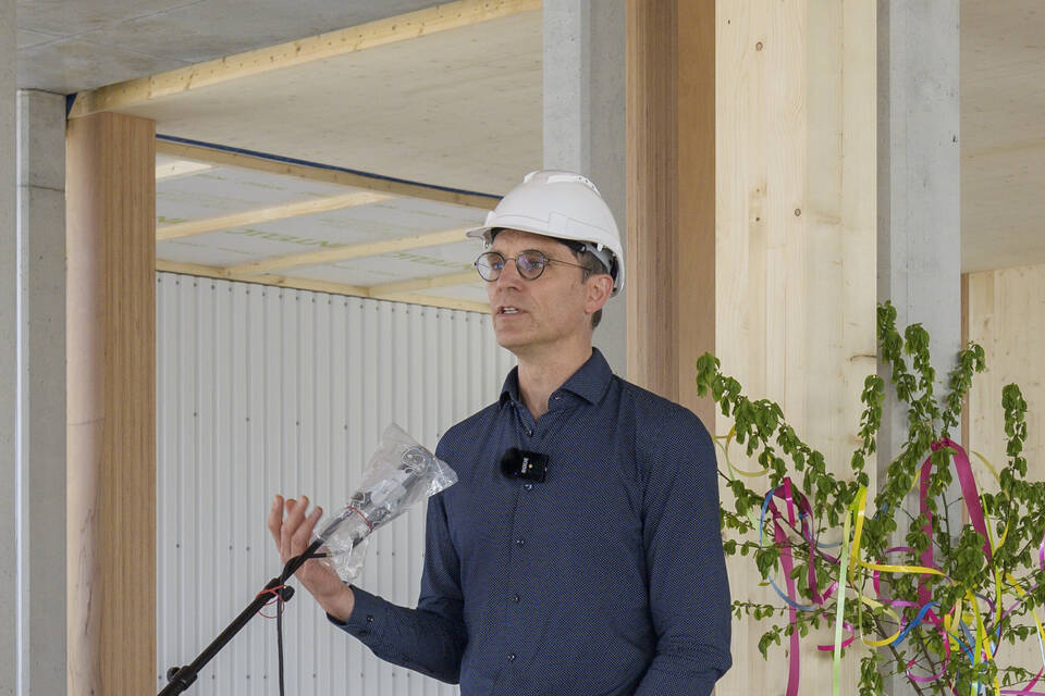 Trotzdem: Den Abschluss des Holzbaus mit Lamellenwänden wollte man feiern und Margarete Over vom Projektteam des CA umriss die Entstehungsgeschichte und dankte nicht nur den Geldgebern, sondern besonders "den vielen Beteiligten" am Bau und in der Planungsphase. "Wir wollten mit diesem Projekt zeigen, dass man heute schon sozial und ökologisch bauen kann. Nicht ob, sondern wie das Haus gebaut wird, war über Jahre unser Thema. Und wir haben es geschafft."