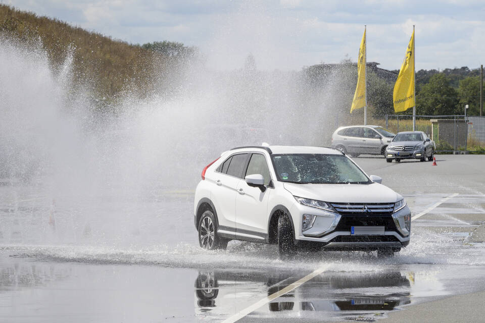 Beim ADAC-Fahrsicherheitstraining ist auch Wasser im Spiel. Foto: Philipp Rothe