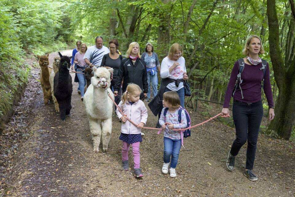 Mit Alpakas auf Wanderschaft zu gehen, ist etwas ganz Besonderes. Mit ihrer ruhigen Ausstrahlung, ihrem flauschigen Fell, ihren großen Augen und ihren niedlichen Gesichtern erobern sie jedes Herz von der ersten Sekunde an. RNZ-Leser gehen von der Ziegelhäuser Alpakafarm aus gemeinsam mit den kleinen Andenkamelen rund eineinhalb Stunden auf Wanderung. Und wer dann noch nicht genug Streicheleinheiten verteilt hat, der kann auf dem idyllischen Gelände am Pferchelhang auch noch den flauschigen Seidenhühnern das Gefieder kraulen.