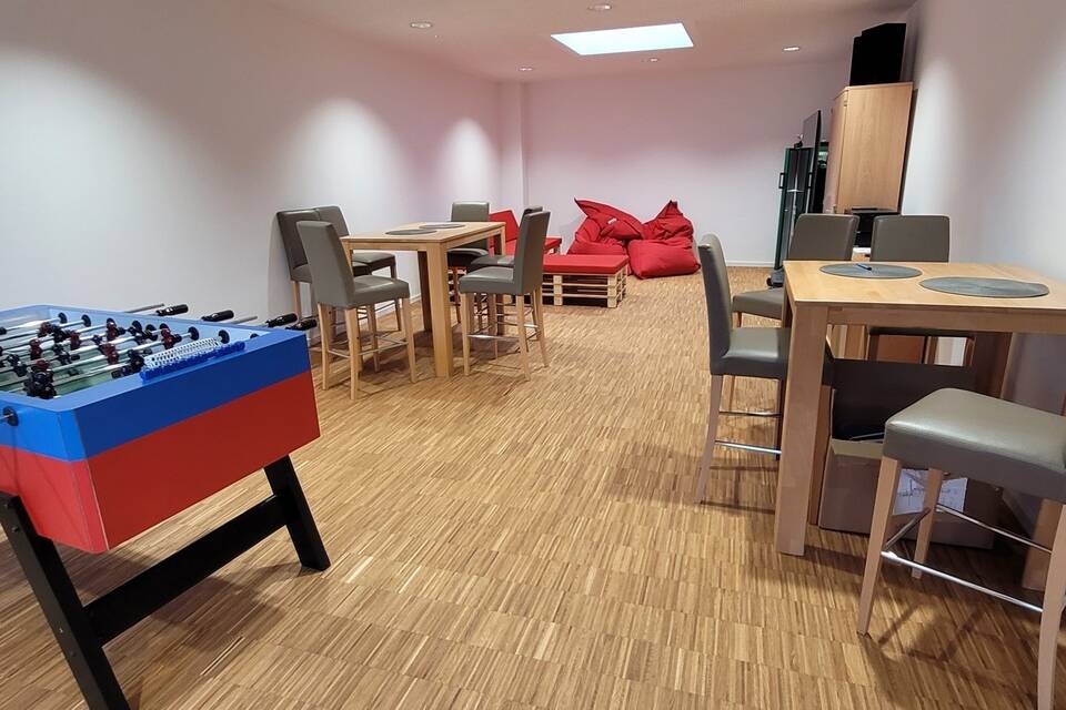 Im Obergeschoss entstanden neue Sozial-, Aufenthalts- und Schulungsräume mit den entsprechenden Nebenräumen, eine großzügige Terrasse sowie ein Lichthof als weitere Dachterrasse im Jugendbereich. Der Verwaltungstrakt wurde um einen leicht erhöhten und auskragenden Kopfbau für die Einsatzzentrale erweitert. Das Gebäude wurde barrierefrei errichtet und besitzt einen Aufzug ins Obergeschoss, wo auch ein behindertengerechtes WC zu finden ist. Zudem verfügt das Gebäude über eine autonome Notstromversorgung, und kann bei einem länger anhaltenden Stromausfall weiter vollumfänglich betrieben werden.