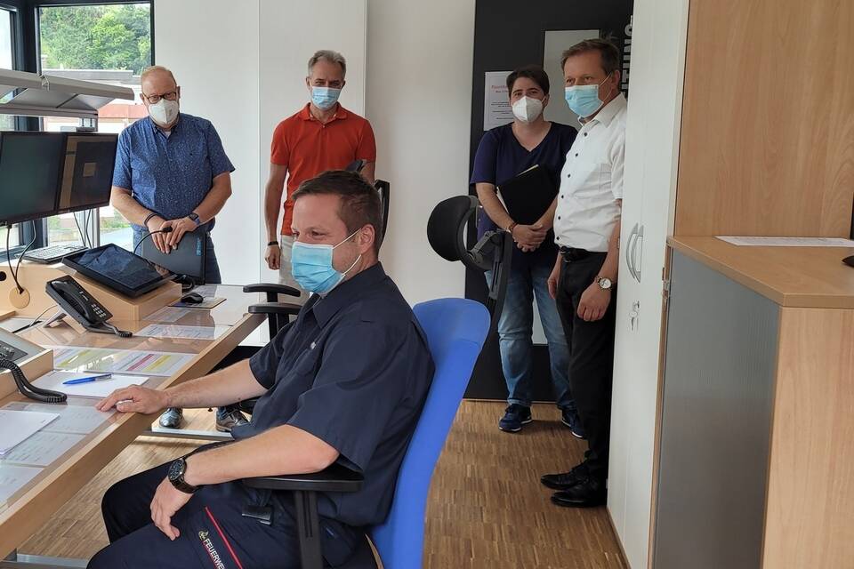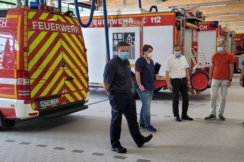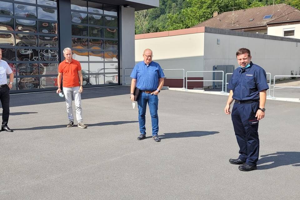 "Das Haus ist nicht für die Feuerwehr, sondern für die Bürger – für die Sicherheit der Bürger", betont Bürgermeister Peter Reichert, der gestern zu einem "Presserundgang" geladen hatte. Neben Lenk mit dabei Bärbel Preißendörfer vom Ordnungsamt, Bauamtsleiter Detlef Kermbach und der Leiter der Hochbauabteilung Heinz Lang, der sich mit Lenk gemeinsam vor Ort "voll reingekniet" hat. "Und dass bei so einer Dimension", betont das Stadtoberhaupt und lobt, das "alles ohne ein böses Wort super funktioniert hat".