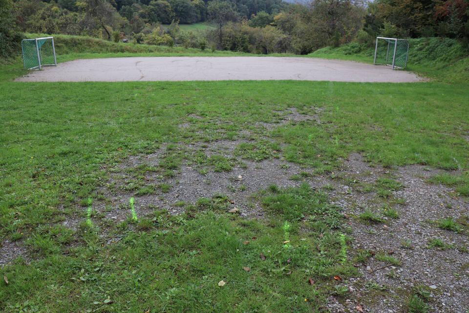 Nur noch leichte Spuren und Markierungsreste der Polizei deuten beim Ratzefest-Platz auf den Fundort der Frauenleiche hin. Foto: PR Video