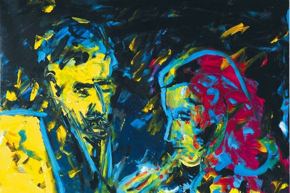 Friedemann Hahn liebt gefühlsbetonte Themen, und seine expressiv-emotionalen Malereien verweisen auf den Post-Impressionismus. Daneben widmet sich der vielseitige Künstler auch der Poesie, und die Nachdenklichkeit, die er hier zum Ausdruck bringt, spiegelt sich wiederum in seinen Bildern, die kraftvoll und elementar wirken. Seine Figuren, oft auf den Kopf reduziert, entwickelt er ganz aus der Farbe heraus. Manchmal dominieren Gesicht und Hut, alles andere bleibt dunkel.