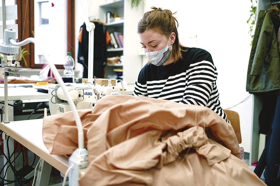 In normalen Zeiten können sie dabei auf die Hilfe der Ankleiderinnen zählen. Im Nationaltheater sind die Schneiderinnen zugleich Ankleiderinnen, die Haken und Knöpfe in Windeseile öffnen, Schnallen und Gürtel festzurren, um Schauspieler und Sänger mit einem letzten prüfenden Blick auf die Bühne zu entlassen. Bei den Vorführungen vor dem harten Lockdown, aber schon unter Hygieneauflagen mussten die Künstler auf diesen Service verzichten. "Wir haben die Kostüme nur noch in die Garderobe gehängt, dann mussten die Darsteller allein zurechtkommen", erzählt Kim Englert, die als Damenschneiderin die Ideen der Kostümbildner umsetzt.