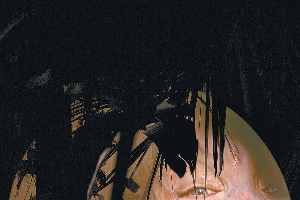 Riesengrimasse hinter tropischen Gewächsen: Auf diesem Szenenfoto sind die verzerrten Gesichtszüge des Heidelberger Schauspielers Hendrik Richter als Projektion auf einem großen Ballon zu sehen. Gespielt wird das chilenische Stück "Wo die Barbaren leben" im großen Glashaus des Botanischen Gartens. Foto: Sebastian Bühler