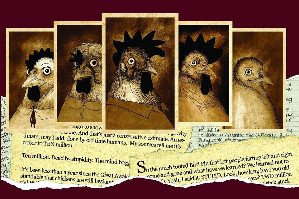 Sie können denken, sie können sprechen – und irgendwann wehren sie sich: die Hähne und Hühner, die den Comic „Elmer“ bevölkern. Foto: Dantes Verlag & Ilyn Alanguilan