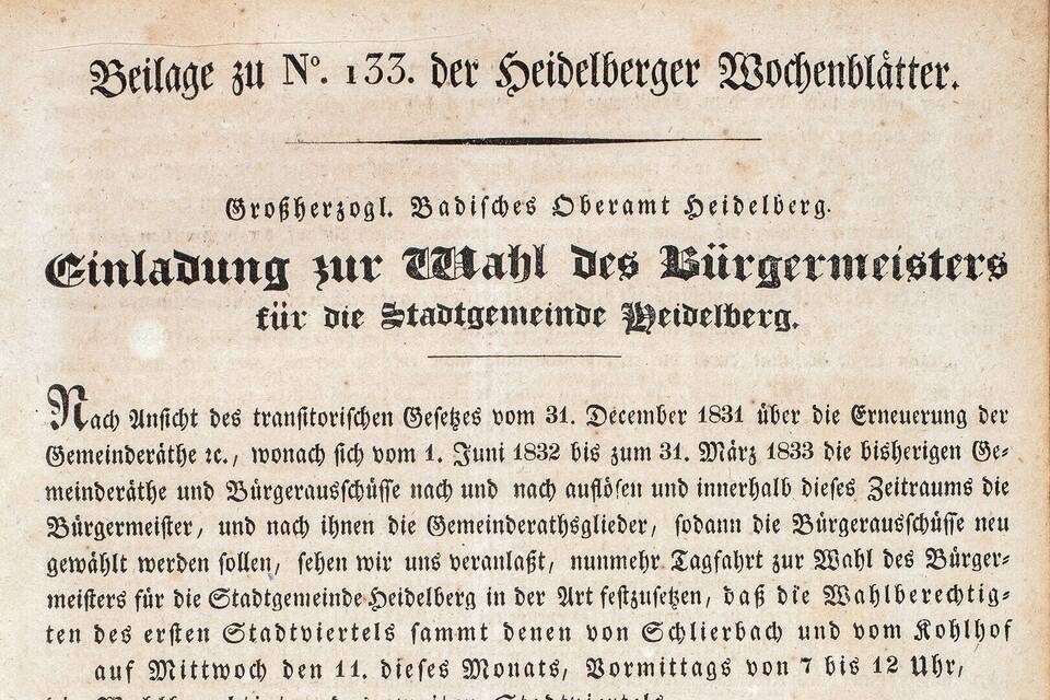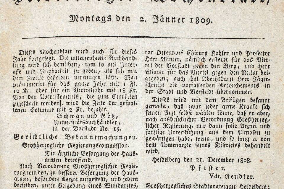 1809), das den Charakter eines Amtsanzeigers hatte. Foto: Stadtarchiv Heidelberg