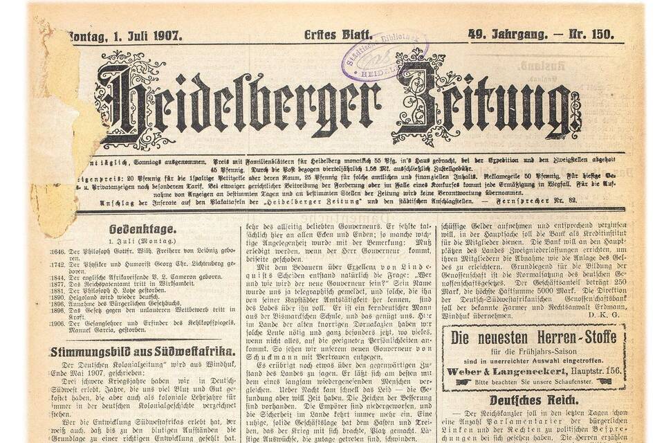 Die „Heidelberger Zeitung“ – ein Original aus dem Jahr 1907. Foto: RNZ-Archiv