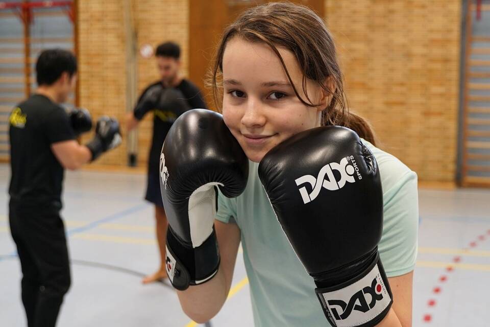 Nürnberg. Mit einem Tritt befördert Nora Falk ihre Boxpartnerin von sich weg. Diese geht sofort in den Gegenangriff über – alles passiert aber in einem kontrollierten Tempo.