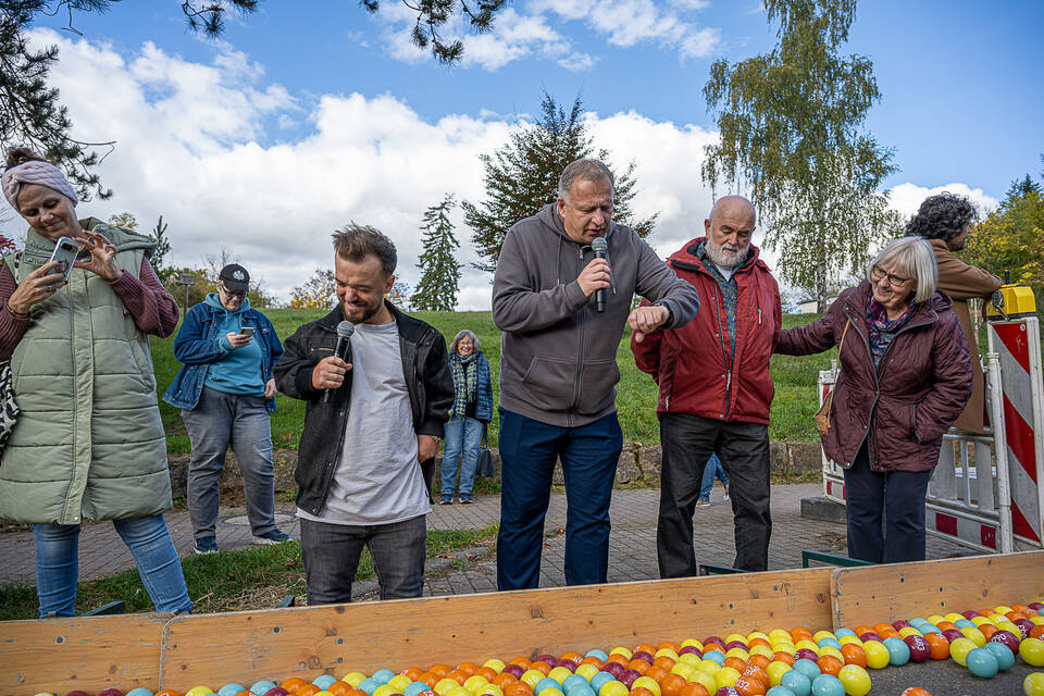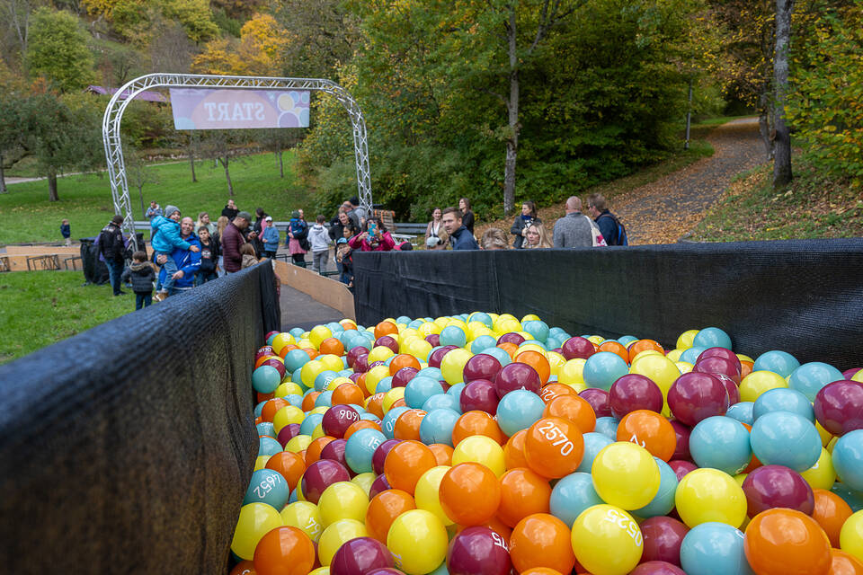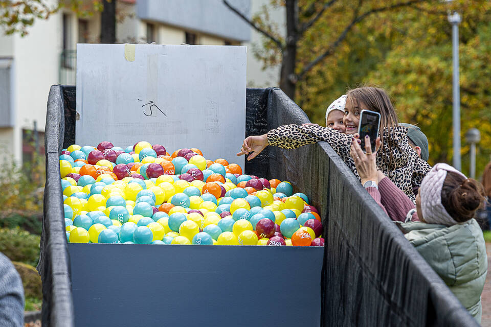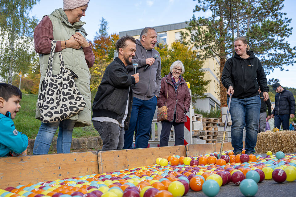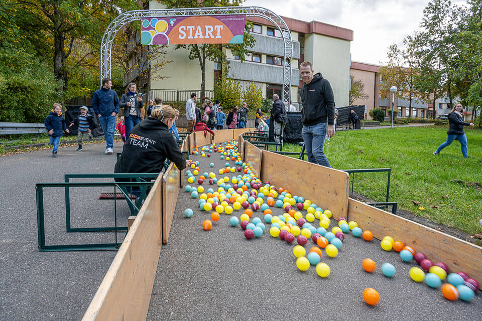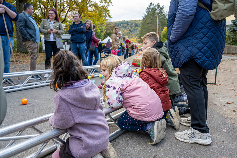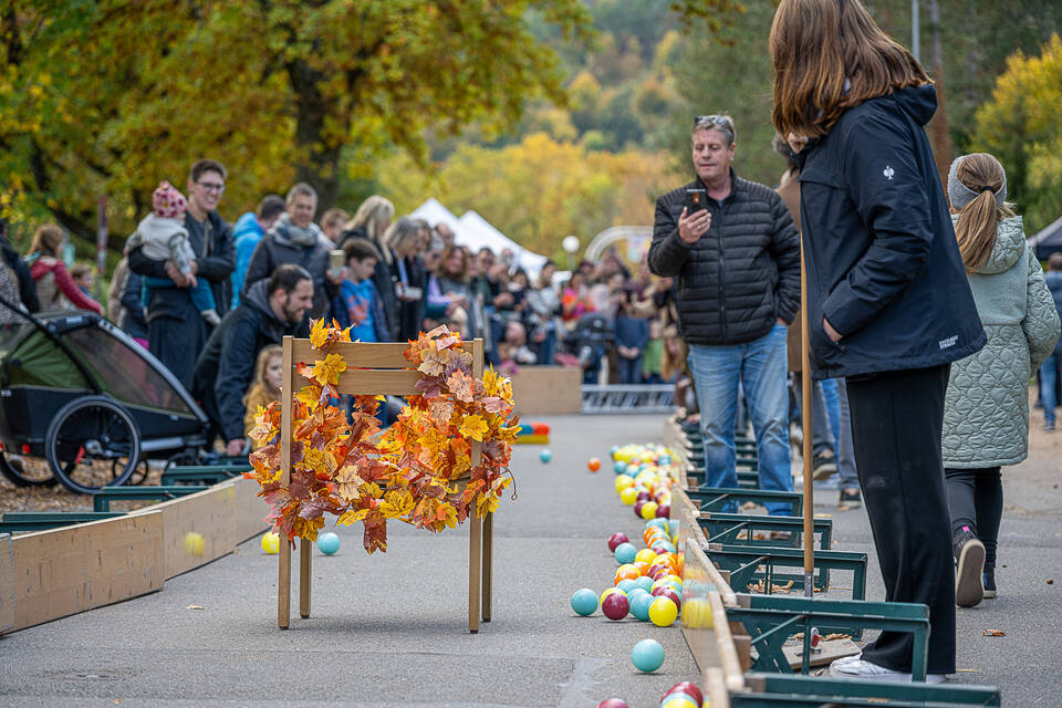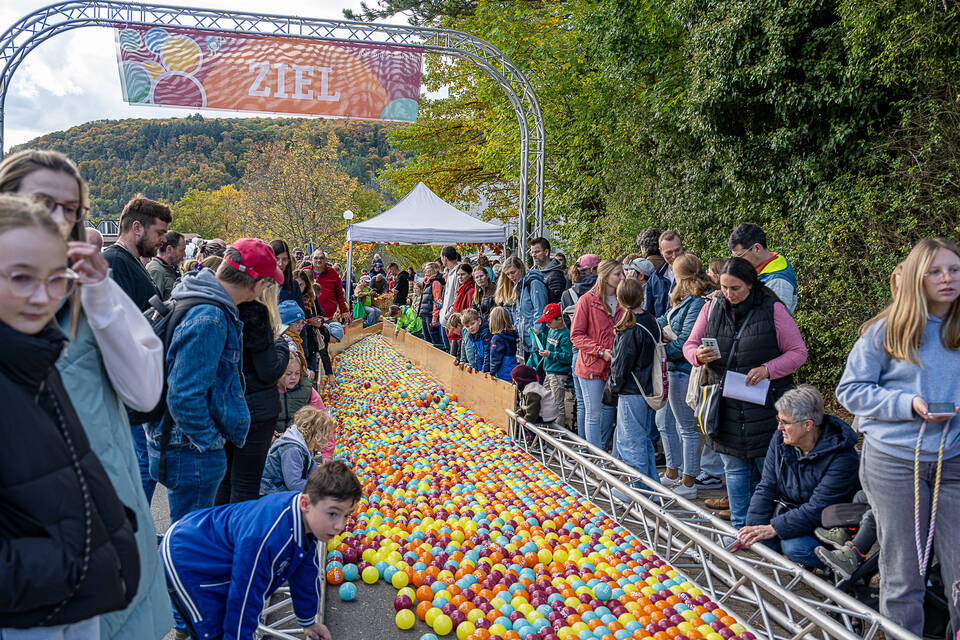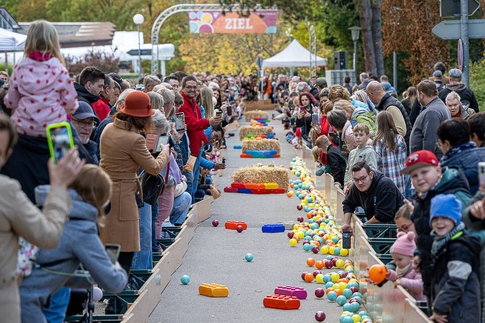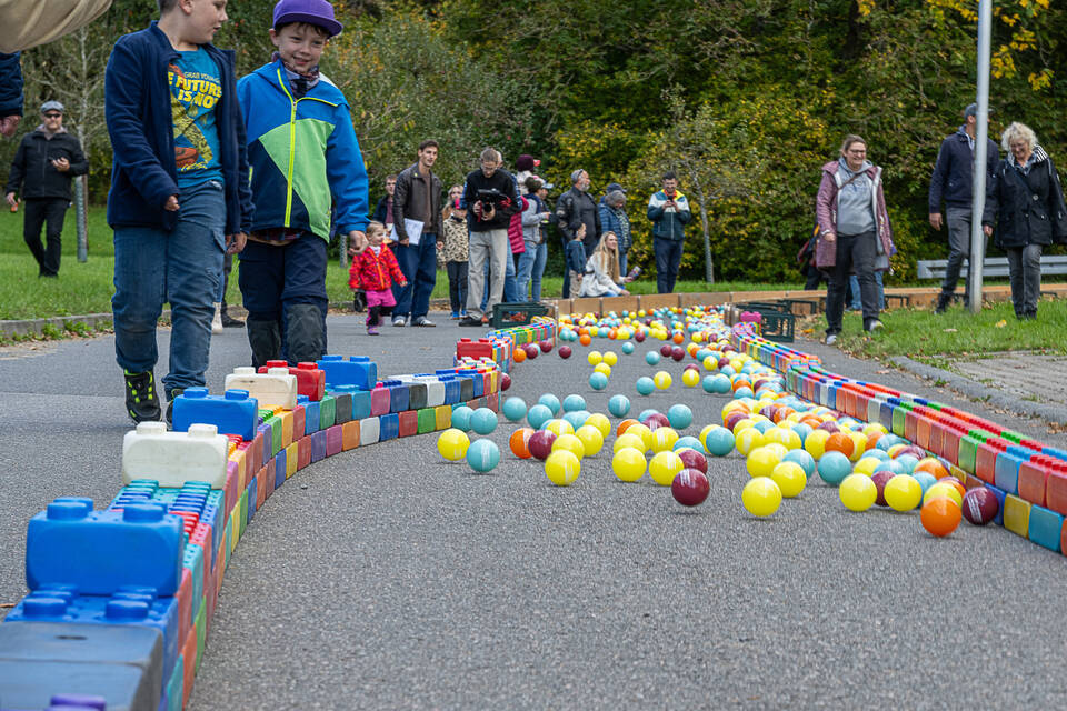 Klein und Groß verfolgen gespannt, wie die Bälle Hindernisse überwinden und welcher am schnellsten ins Ziel kommt. Foto: Thomas Kottal