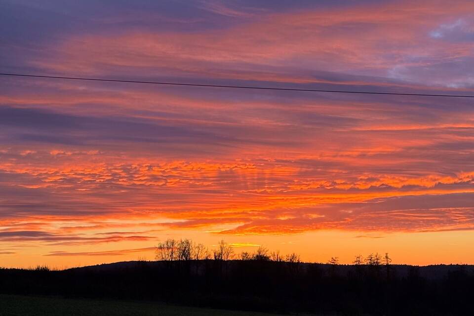 Das Morgenrot des Sonnenaufgangs hat Sonja Link bei Dilsberg fotografiert.