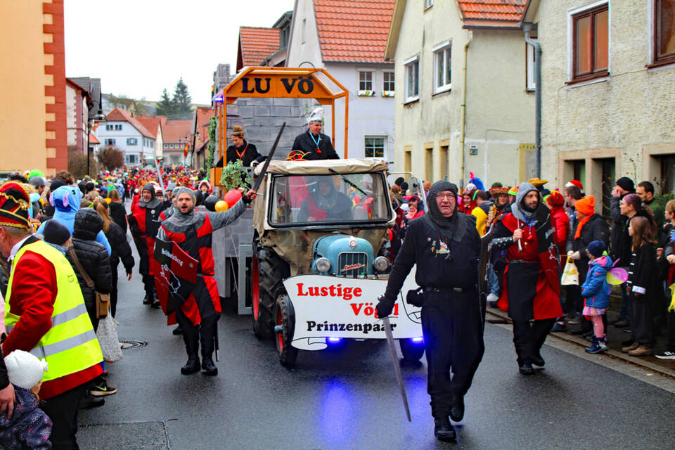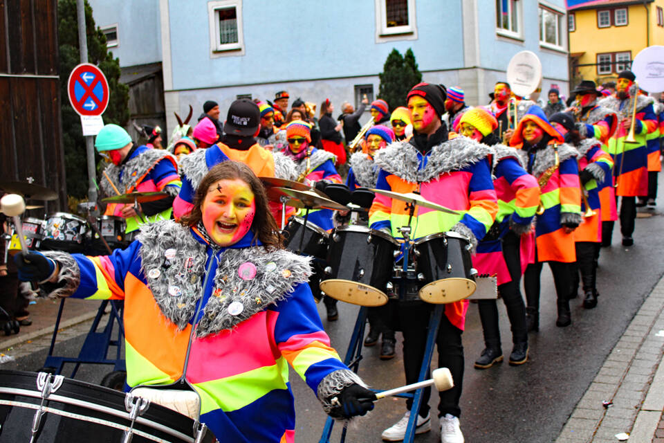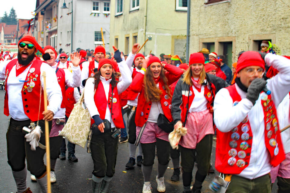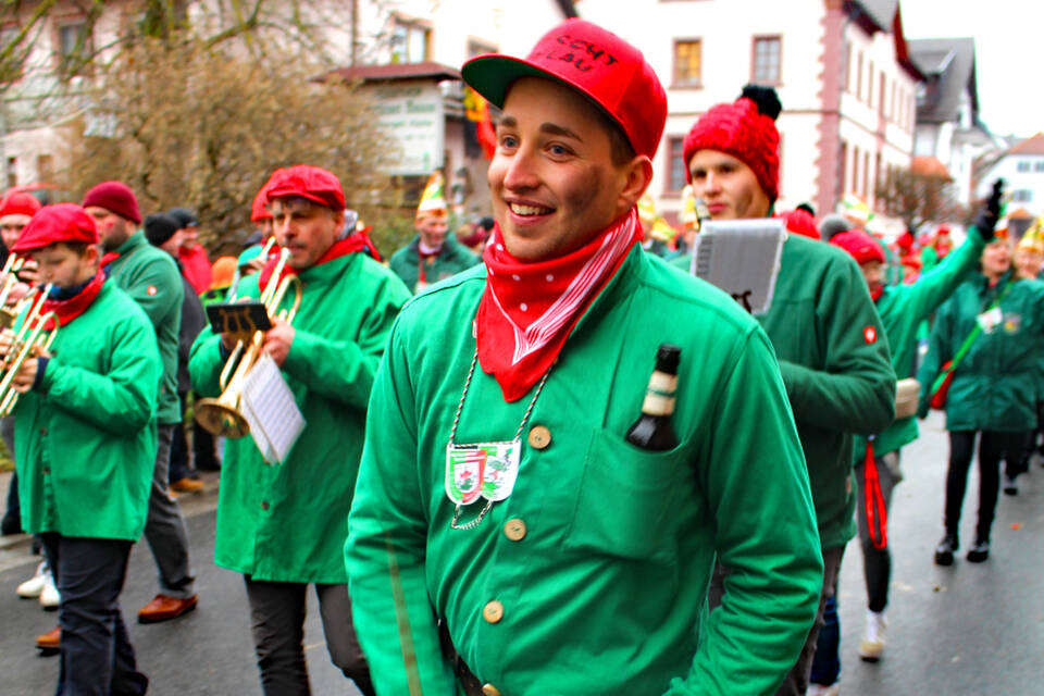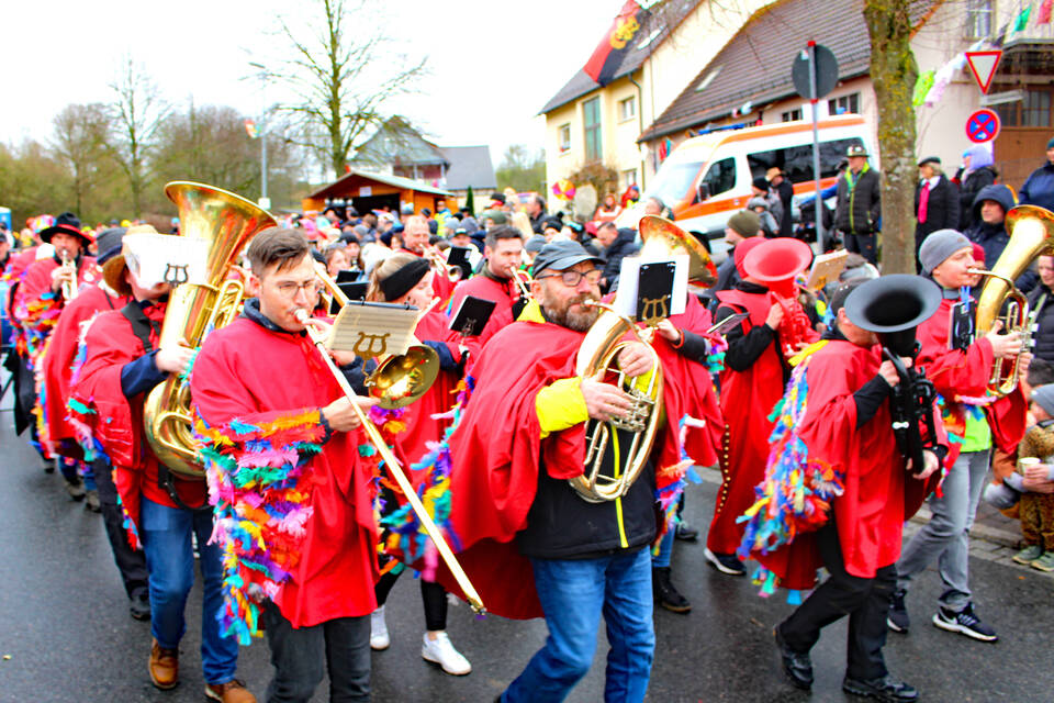 Die Hofkapelle der „Lustigen Vögel“ gab beim Schweinberger Umzug den Ton an. Foto: Janek Mayer