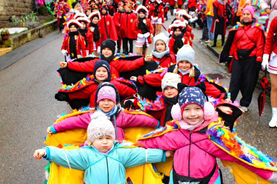 Das Vogelvolk beeindruckte allein schon zahlenmäßig und brachte mit der bunten Kostümierung Farbe in den (nur wettermäßig) trüben Tag. Foto: Janek Mayer