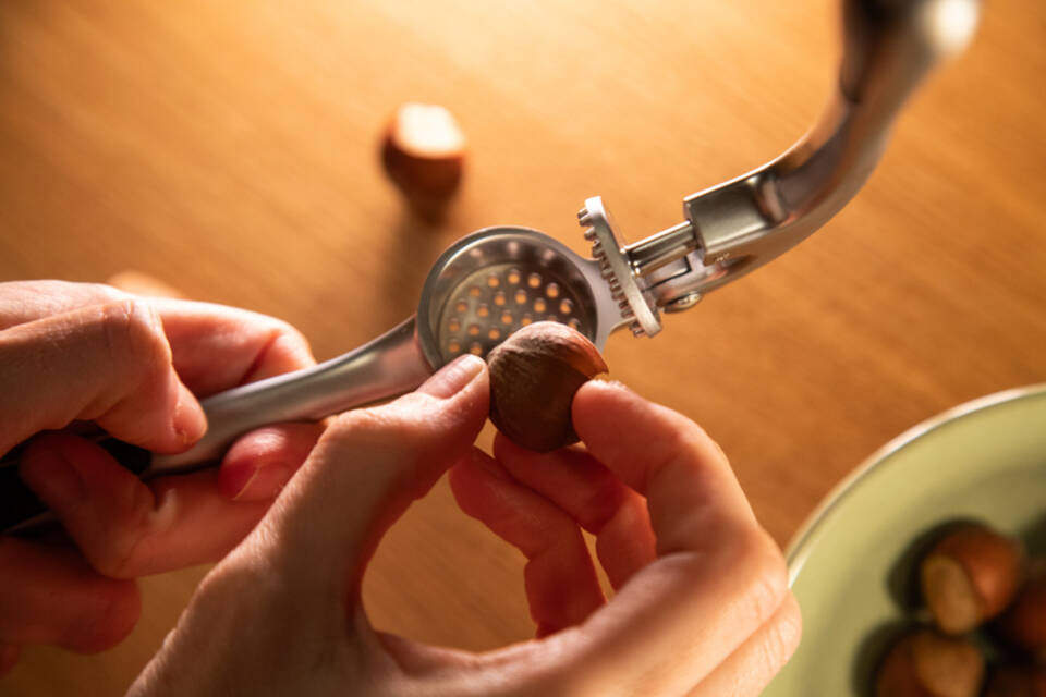 Haselnüsse knacken - Klappt's mit der Knoblauchpresse?