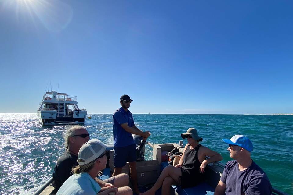 Mit einem Boot werden die Tourteilnehmer zum Exkursionsschiff gebracht. Foto: dpa