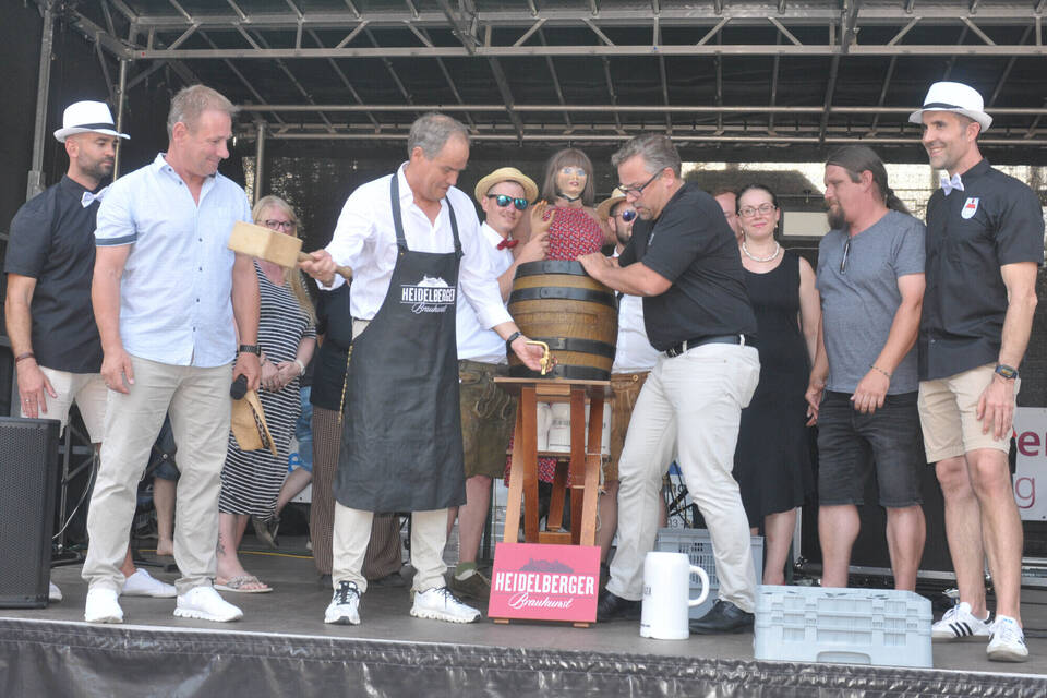 Die „Bleelumbekerwe“ in Ziegelhausen erinnert an das einst ertragreiche Wäschereigewerbe im Ort. Zum Brauchtum gehört aber auch die Kerweliesel, die in diesem Jahr auf Mallorca aufgestöbert wurde. Geboten war ein buntes Programm mit viel Musik. Fotos: Welker