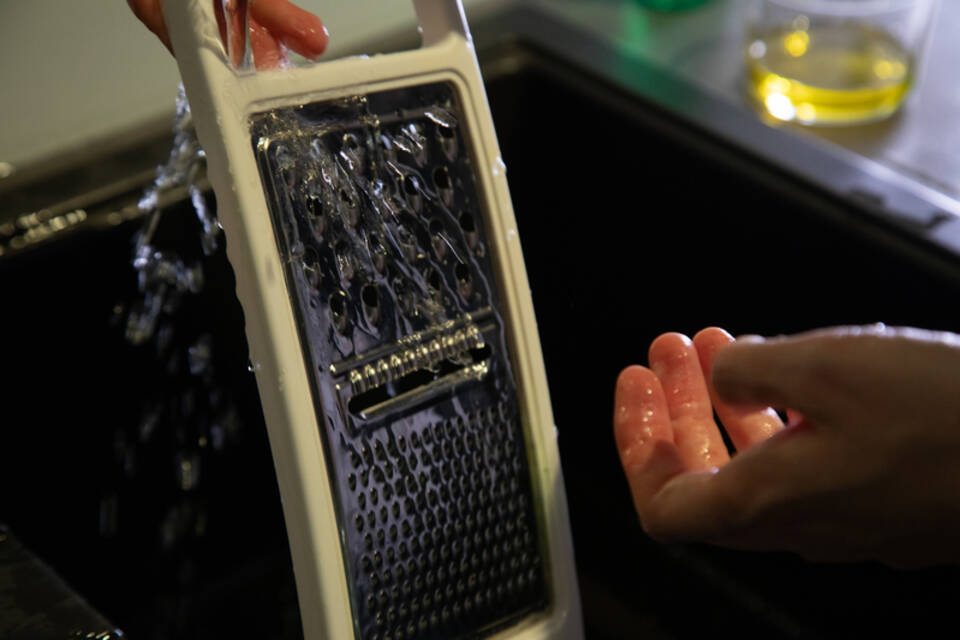 Fazit: Die Gemüsereibe ist wieder fleckenfrei. Foto: Christin Klose/dpa-tmn