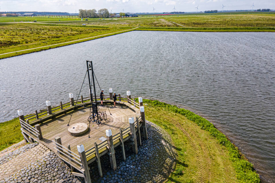Künstliche Insel, gestautes Wasser: Aussichtspunkt im Flevopolder. Foto: Sportservice Flevoland/Visit Flevoland/dpa-tmn
