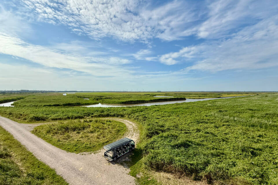 Die wohl bequemste Möglichkeit, die Oostvaardersplassen zu erkunden, ist eine Fahrt mit dem E-Mobil ab dem Besucherzentrum. Foto: Wolfgang Stelljes/dpa-tmn