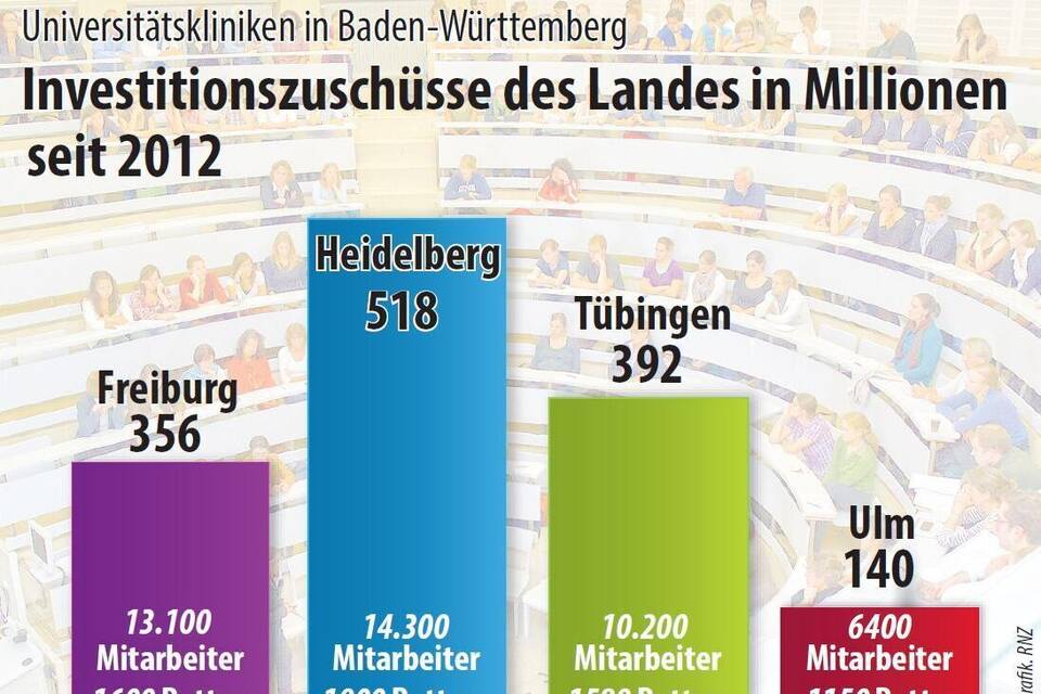 Doch wie steht nun Stuttgart zu dem Projekt Klinikfusion? Schwer zu sagen. Die RNZ klopfte beim Finanzministerium des Grünen-Ministers Danyal Bayaz an – dort machte man komplett dicht, lieferte aber die angefragten Zahlen, welche Landesuniklinik wieviel Geld erhalte. Die RNZ-Anfrage beim Sozialministerium lief dagegen völlig ins Leere. "Aus Datenschutzgründen" will man nicht einmal verraten, wieviel Geld jährlich ins Klinikum Mannheim fließt (wenig). Ein Sprecher verweist außerdem auf Gespräche "innerhalb der Landesregierung" und mit allen Akteuren, deren Ergebnis man "nicht vorgreifen" wolle. Wenigstens das ist glaubwürdig. RNZ-Informationen zufolge stimmen sich am heutigen Freitag das Sozialministerium, das Wissenschaftsministerium, das Finanzministerium und das Staatsministerium, das die Geschäfte von Ministerpräsident Winfried Kretschmann organisiert, zum Thema Klinikfusion ab.