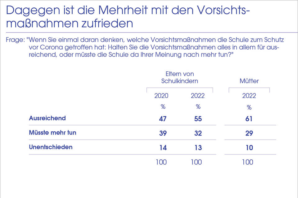> Ausreichender Schutz: Die Vorsichtsmaßnahmen an den Schulen stoßen auf relativ breite Zustimmung. 55 Prozent nennen sie ausreichend, 32 Prozent denken, man müsste mehr tun.