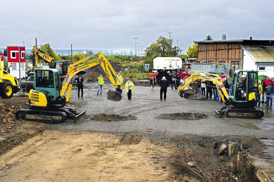 Erster Baggerbiss am Sonnenbrunnen
