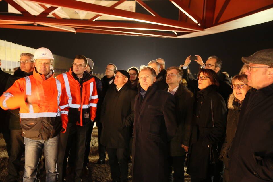 Äußerst interessiert ließ sich Verkehrsminister Hermann (3.v.l.) die Technik erklären, daneben Alexander Hofmann von Hochtief PPP. Foto: Endres