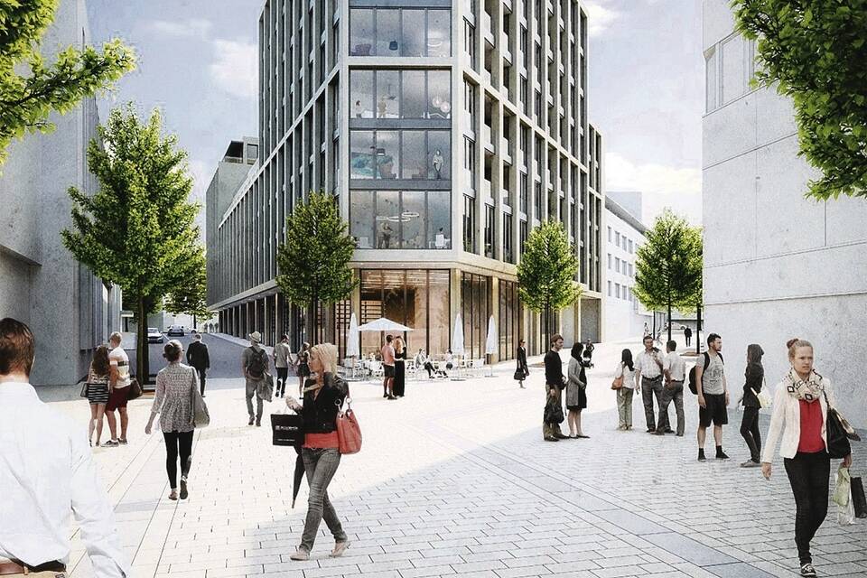 So soll das Gebäude in der Kilianstraße nach dem Abriss des alten Gebäudes aussehen. Der Neubau wird optische Elemente des alten "Barthel-Hauses" enthalten. Visualisierung: Mattes + Riglewski Architekten Heilbronn