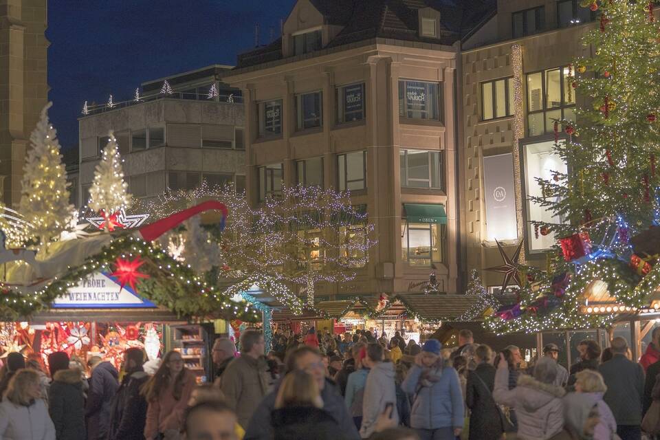Trotz nicht immer idealer Wetterbedingungen haben bislang zahlreiche Menschen den Heilbronner Weihnachtsmarkt besucht. Noch bis Samstag wird hier täglich auch ein stimmungsvolles Rahmenprogramm geboten. Foto: HMG / Jürgen Häffner