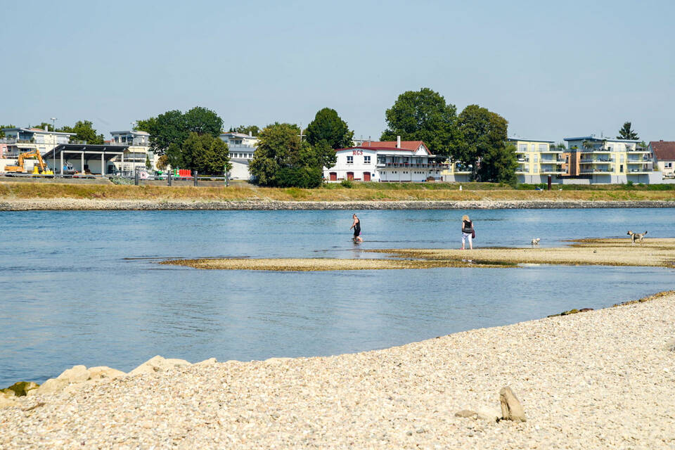 Auch in Altlußheim und Speyer sanken die Pegel des Rheins. Die Schiffe dürfen hier derzeit nur mit halber Ladung fahren.
