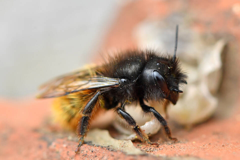 Insbesondere Wildbienen - hier eine Gehörnte Mauerbiene - leiden unter der Nahrungsknappheit. Foto: dpa