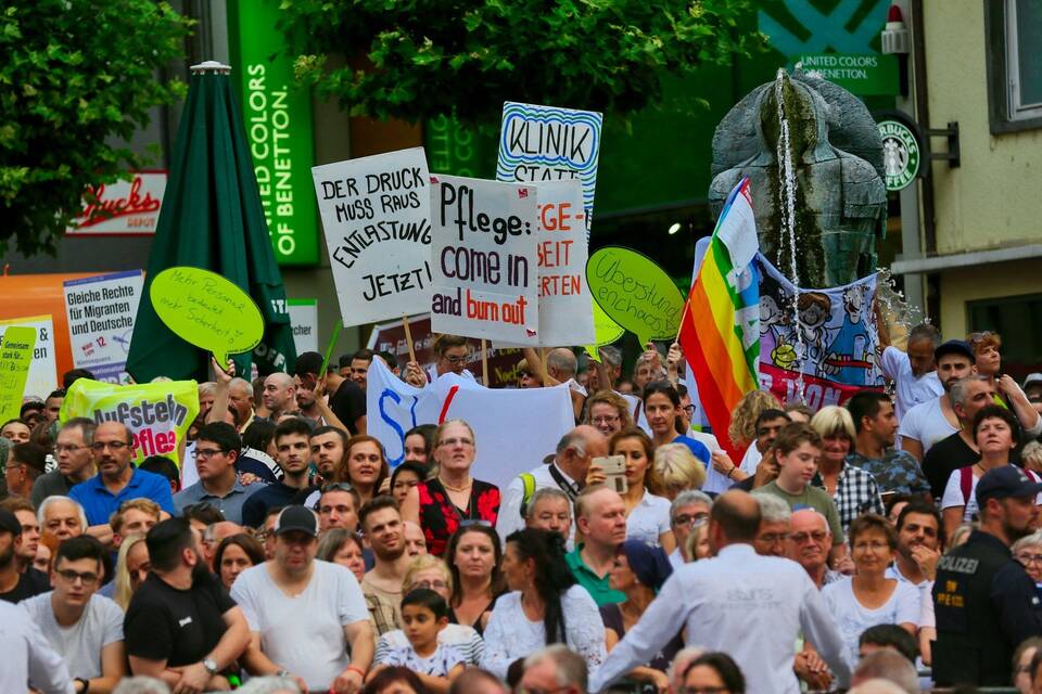 Unüberhör- und -sehbar: Bei der Wahlkampfveranstaltung mit Angela Merkel auf dem Heilbronner Kiliansplatz gab es lautstarke Proteste der Pflegekräfte. Foto: Endres