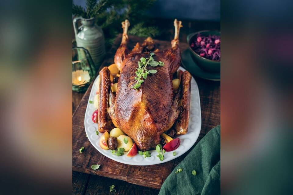 Knusprige Haut, saftige Füllung09:56 UhrRezept für einen knusprigen Gänsebraten mit BlaukrautMit Maronen, Äpfeln und Majoran wird diese Gans zum Festtags-Hit. Wie sie garantiert gelingt und das Blaukraut perfekt dazu passt. Knusprige Haut, saftige Füllung09:56 UhrRezept für einen knusprigen Gänsebraten mit BlaukrautMit Maronen, Äpfeln und Majoran wird diese Gans zum Festtags-Hit. Wie sie garantiert gelingt und das Blaukraut perfekt dazu passt.