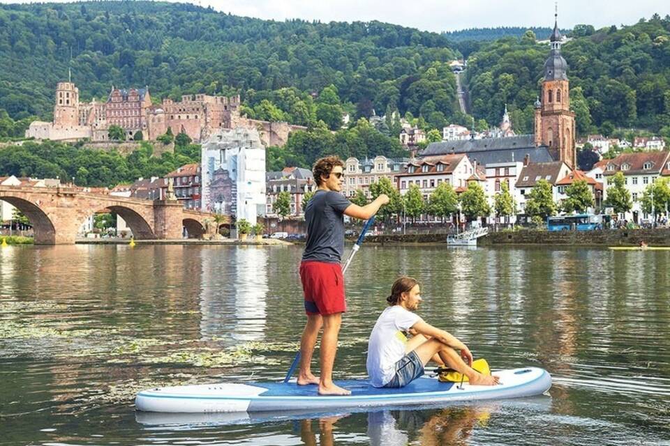 Stand-up-Paddeln ist voll im Trend. Und das zu Recht! Es gibt kaum etwas schöneres, als bei Sonnenschein über den Neckar zu paddeln, Heidelberg aus einem ganz anderen Winkel zu sehen, ab und zu die Füße ins Wasser baumeln zu lassen. Das kann man gut von der Neuenheimer Neckarwiese aus tun. Fast noch schöner ist das Paddeln aber auf dem natürlichen Neckar in Wieblingen. Am Elektrizitätswerk kann man einsteigen, sich mit der Strömung treiben lassen und nach einer der Neckarinseln rechts abbiegen, um wieder flussaufwärts zu paddeln. Wenn man Glück hat, sieht man Waschbären am Ufer, Schwäne mit Jungen oder den einen oder anderen Biber. Wer ausdauernd ist, schafft es bei guten Windverhältnissen locker bis zu den Stromschnellen – dann geht es mit dem Brett nicht mehr weiter. Und wer ein Board hat, das groß und stabil genug ist, der kann das Ganze auch gut zu zweit machen – einer paddelt, der andere schaut entspannt in die wunderschöne Natur. Ein perfekter Sommertag – mitten in Heidelberg. (Anica Edinger)