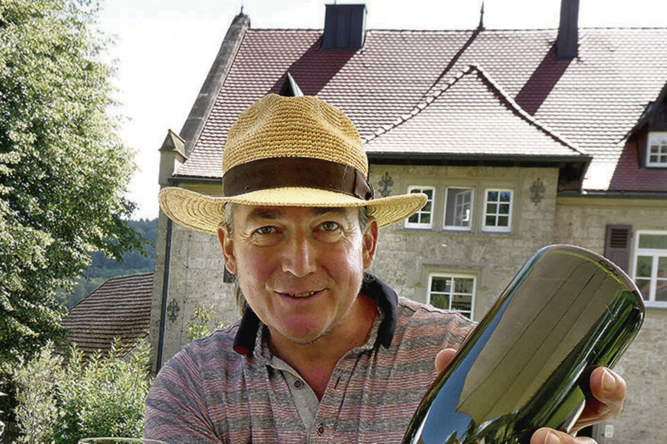 Das Rätsel in seinem Keller lässt auch Hans-Jörg Wilhelm nicht los, regelmäßig führt er Besucher-Gruppen zur Krypta. Neben der Archäologie hat der 49-Jährige noch eine zweite Leidenschaft: Er produziert Birnen-, Quitte- und Apfel-Schaumwein. Wilhelm trägt einen Strohhut, unter dem ein kleiner Zopf hervor lugt, ein kleines Bärtchen ziert sein Kinn. "Es ist ein aufwendiger Prozess, Schaumwein herzustellen", sagt er, "eine Flasche liegt schon mal achtzehn Monate lang auf Gärung." Er erzählt, dass von der Ernte auf den Streuobstwiesen bis zum fertigen Produkt ungefähr zwei Jahre vergehen. "Am Ende fühlt es sich fast wie ein Geschenk an", sagt Wilhelm und lacht.